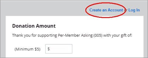 Once you are on the page for the fund you wish to donate to, click on “Create an Account” (in the gray area on the lower portion of the page, above the “Donation Amount” section).